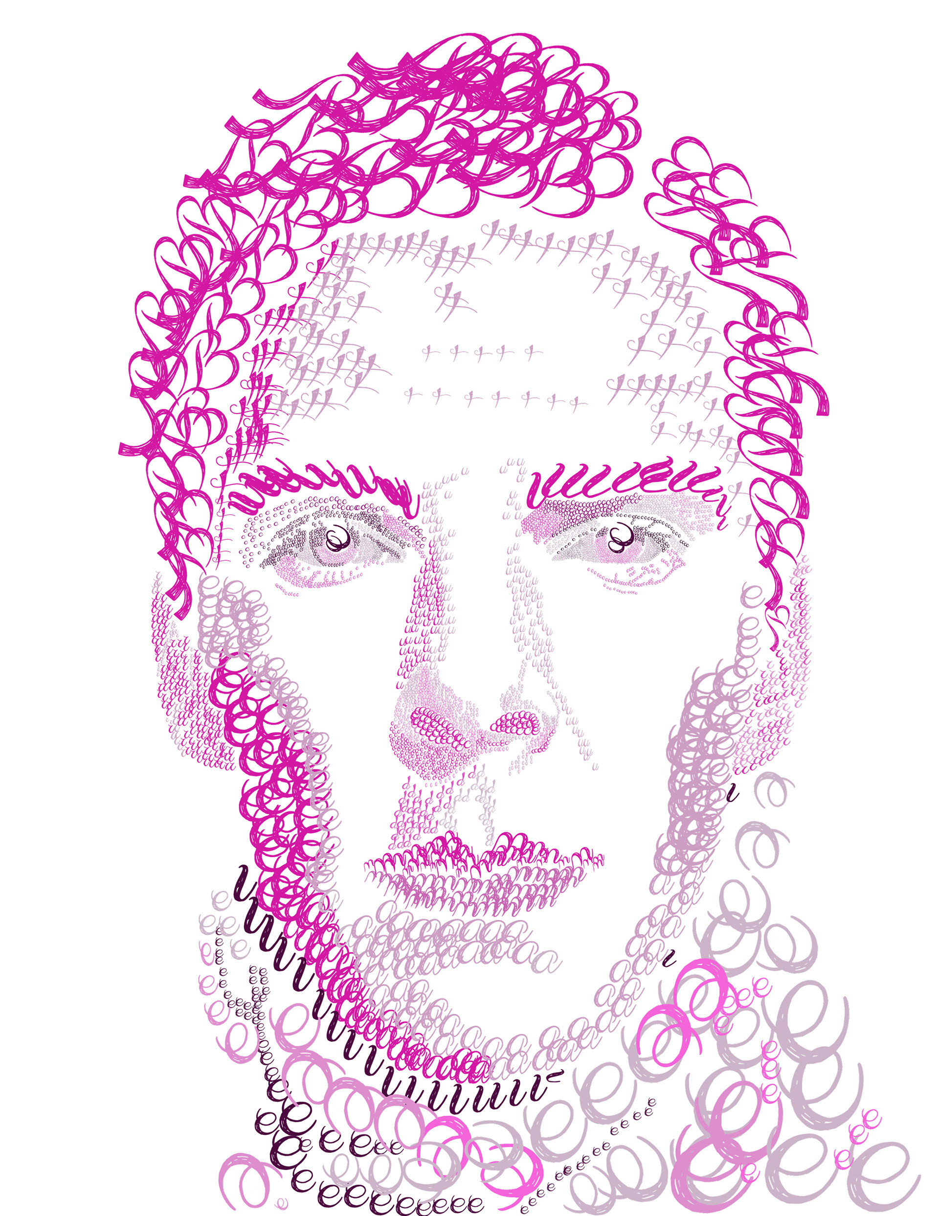 The portrait of Benedict Cumberbatch is a piece I created in Adobe Illustrator. The challenge was to use one font and only one color to create shades. For this illustration, only the letters of the actor’s name were used.