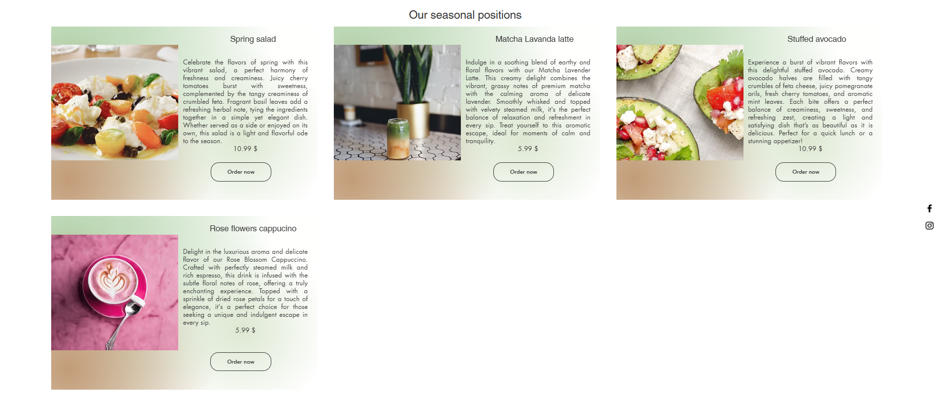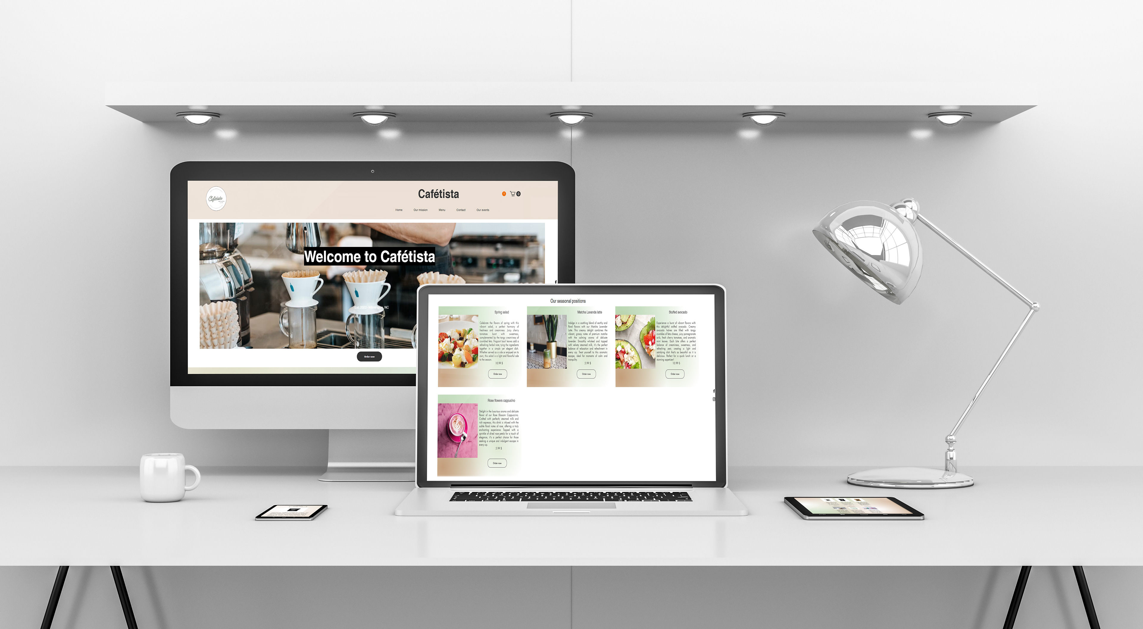 Here is a design for a fictional local business called “Cafetista”. I wanted to create a feeling of a cozy, modern place where you can work, eat healthy food, and drink good coffee.